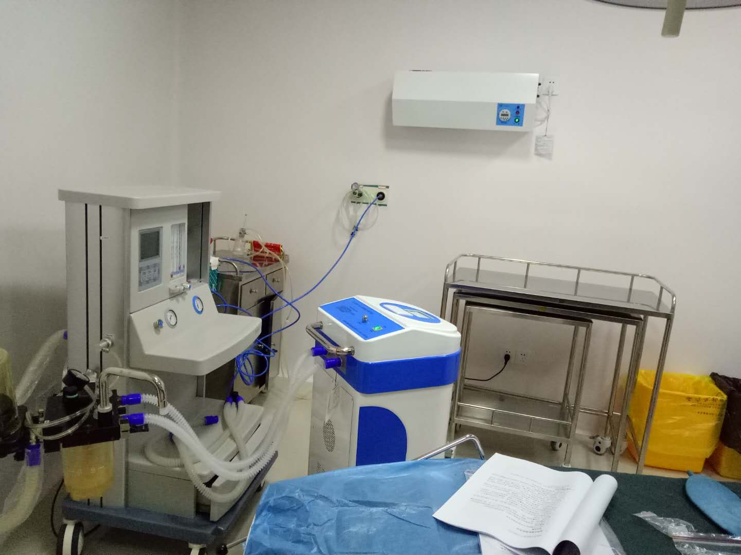 1、對呼吸機的主機外殼和壓縮泵的外殼進行擦起和消毒;